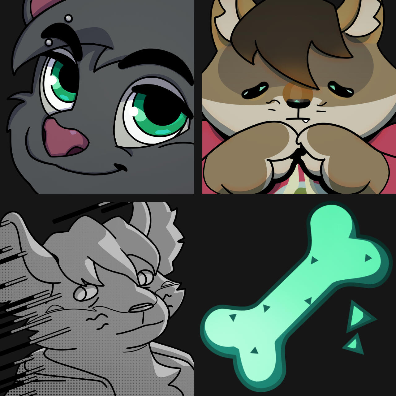 Custom square aspect-ratio emotes that can be used anywhere including twitch, telegram, etc. - Animated emotes are also available, but the pricing will vary based on the complexity of your request. [Sets of 4 emotes are discounted to $100]